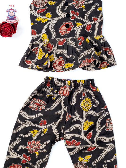 Black - Girls Readymade Floral Printed Kalamakari Sets