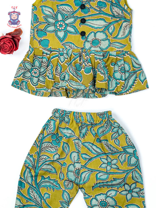 Green - Girls Readymade Floral Printed Kalamakari Sets