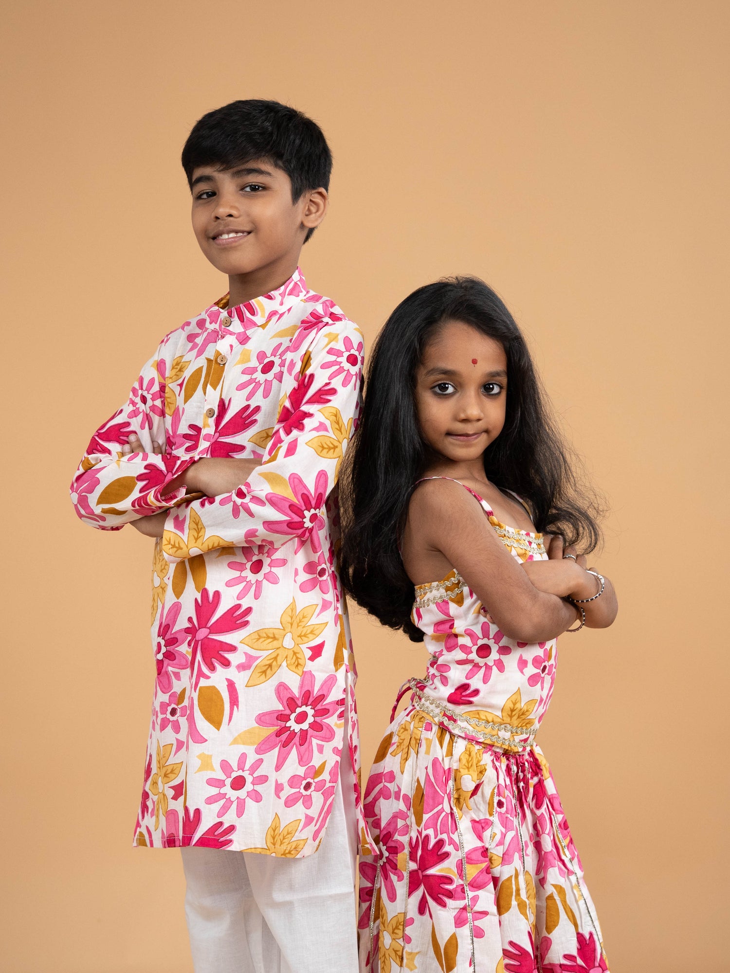 Mustard - Girls Readymade Printed Kalamakari Sets