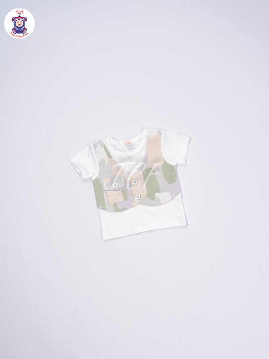 Navy Blue - Printed Collor Neck Shirt With Shorts