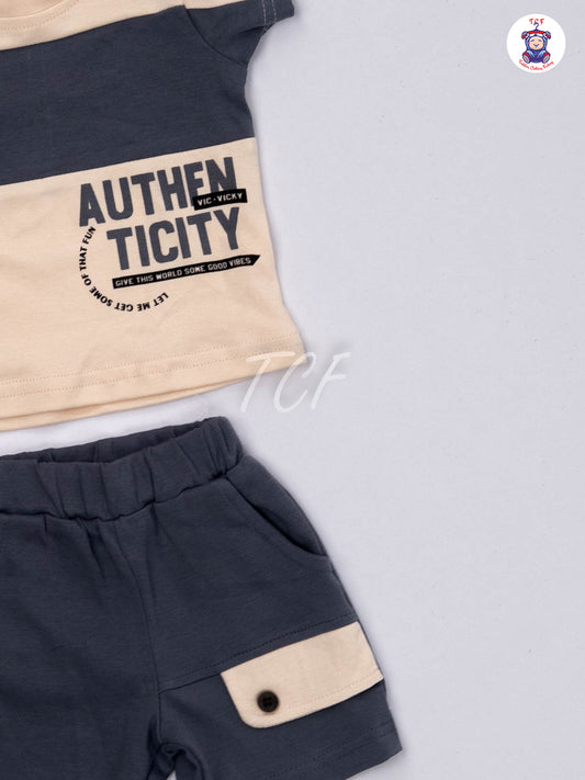 Brown & White T-Shirts With Shirt and Shorts