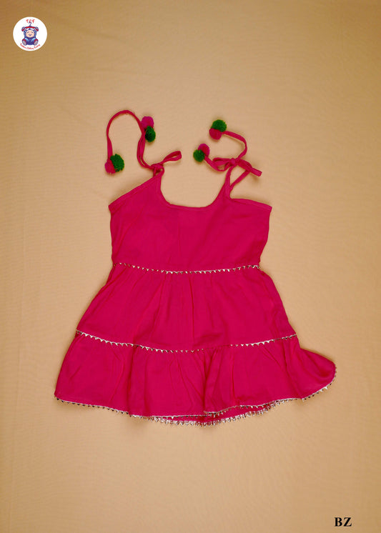 Dark Pink - Sleeveless Lace Top Kurti Dhoti Set