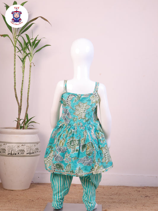 Blue & Pink Floral - Girls Readymade Long Frock