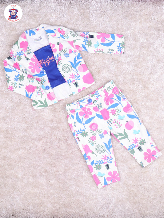 White & Blue Shirt with overcoat & Pant