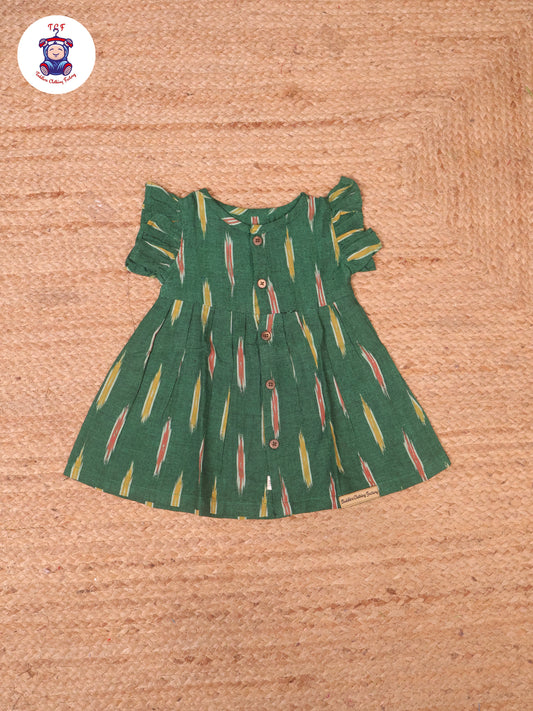 Dark Green - Girls Readymade Ikat Frocks