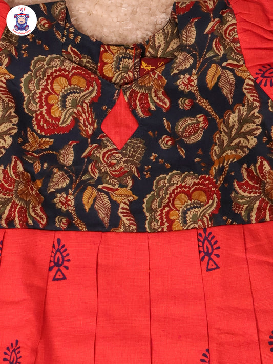 Green & Orange - Cotton Pavadai Sattai