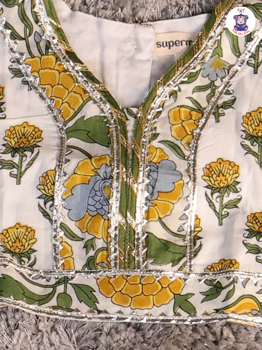 Yellow & White - Floral Printed Girls Lehenga Choli