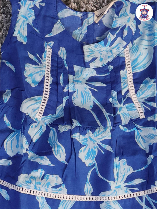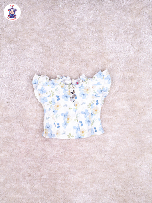 Cream & Blue - Floral Printed Flared Strappy Top & Shorts