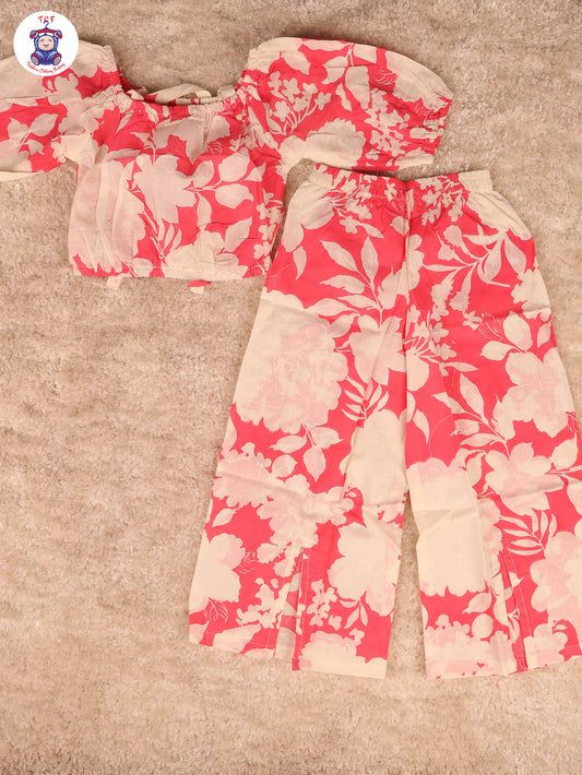 Pink - Floral Crop Top & Pant