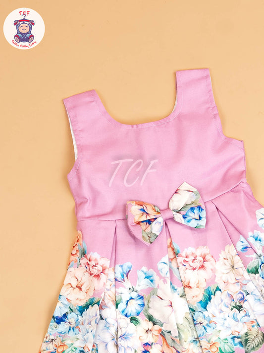 Baby Pink - Girls Floral Printed Ethnic Frock