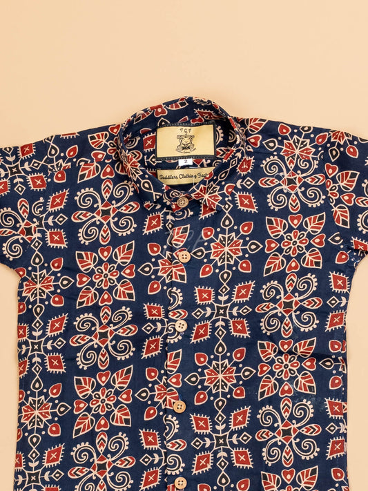 Blue & Maroon - Boys Readymade Cotton Printed Shirts