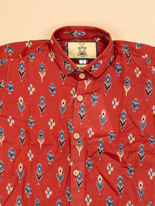 Maroon & Blue - Boys Readymade Cotton Printed Shirts