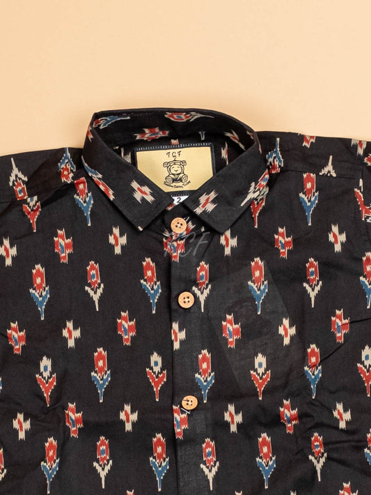 Black & Maroon - Boys Readymade Cotton Printed Shirts