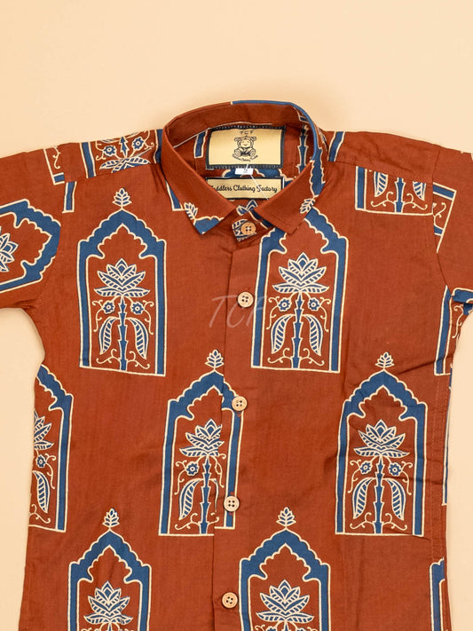 Rust & Grey - Boys Readymade Cotton Printed Shirts