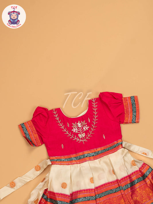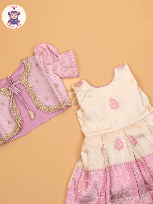 Pink & Half White - Kids Readymade Frocks