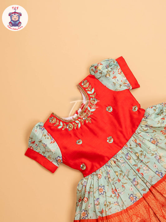 Red & Light Green - Kids Readymade Frocks