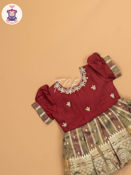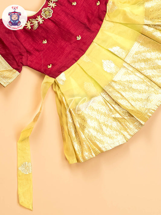 Maroon & Gold - Kids Readymade Frocks