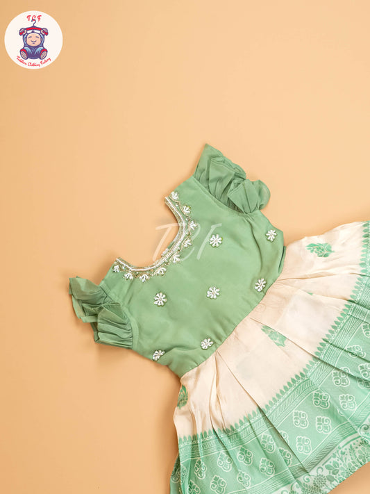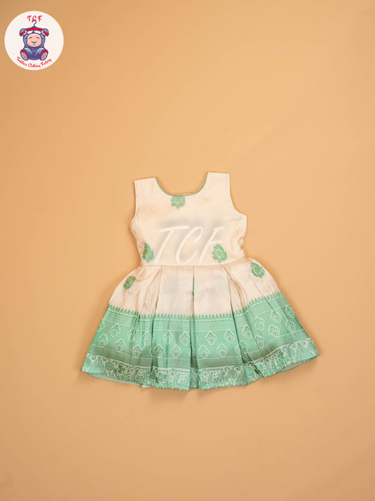 Pista Green & Half White - Kids Readymade Frocks
