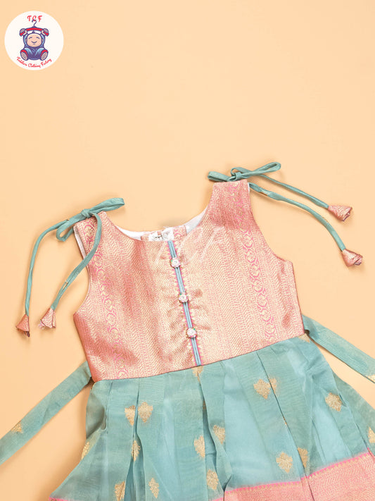 Pink & Green Tissue - Kids Readymade Frocks