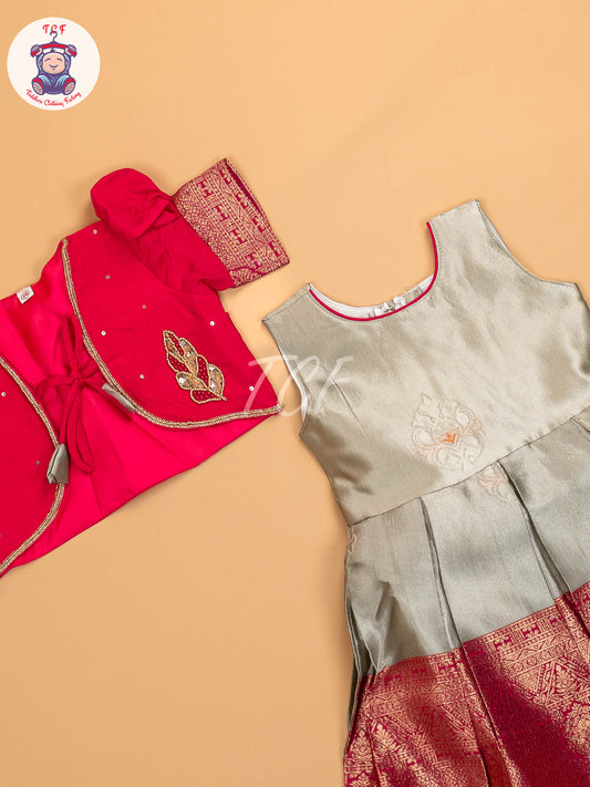 Pink & Light Grey - Kids Readymade Frocks