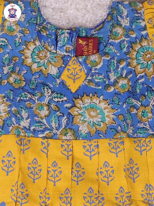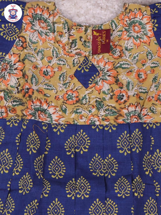 Blue & Mustard Floral - Girls Readymade Long Frock