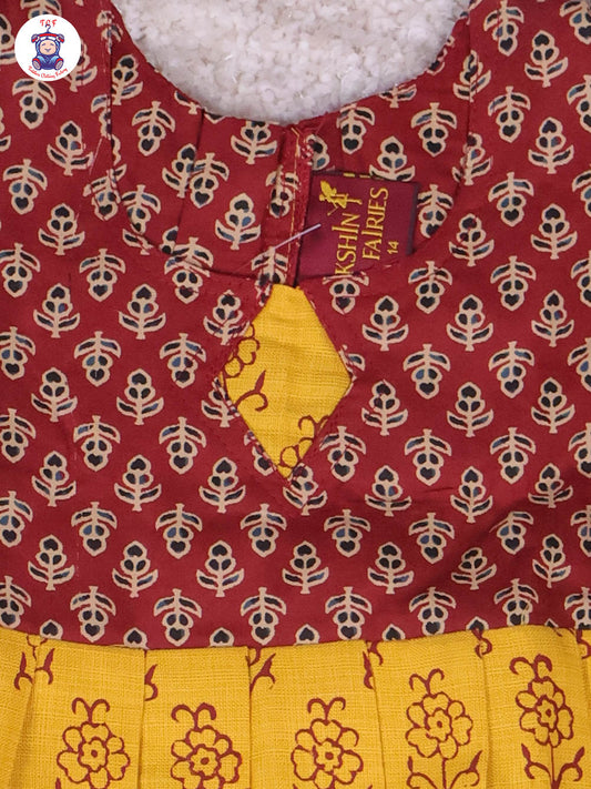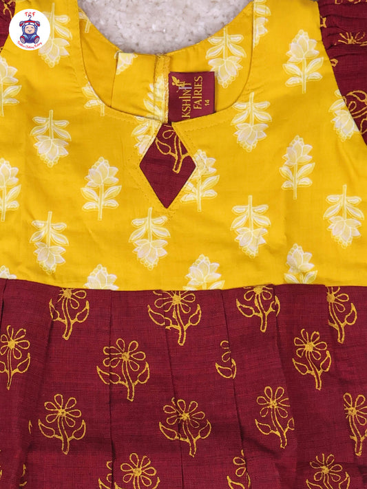 Yellow & Maroon Floral - Girls Readymade Long Frock