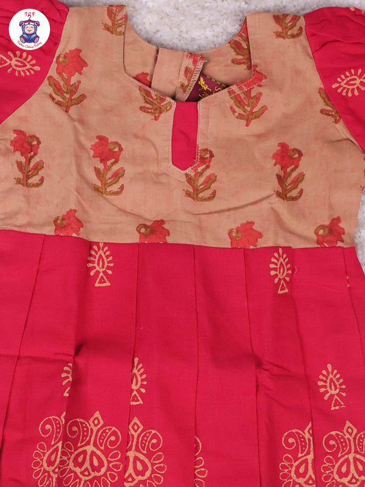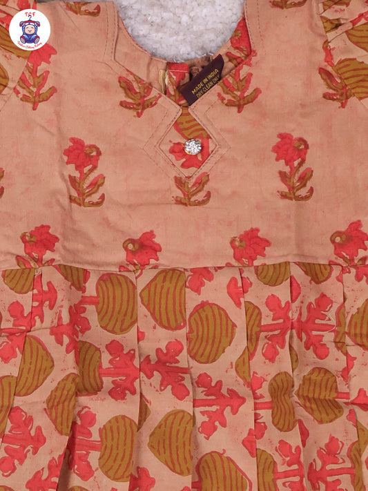 Peach & Reddish Brown Floral - Girls Readymade Long Frock