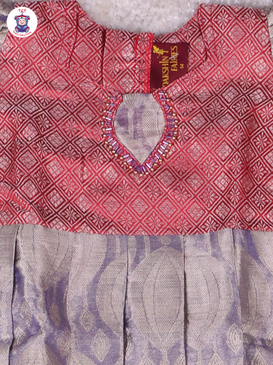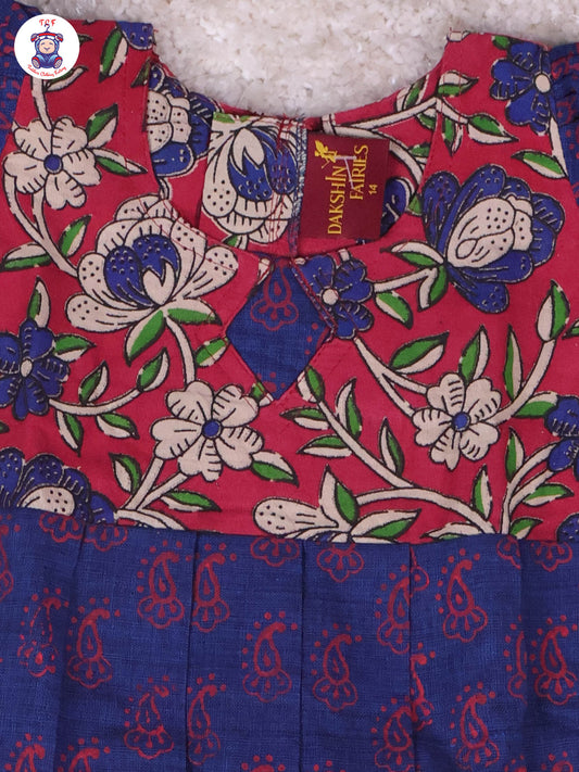 Magenta & Dark Blue Floral - Girls Readymade Long Frock