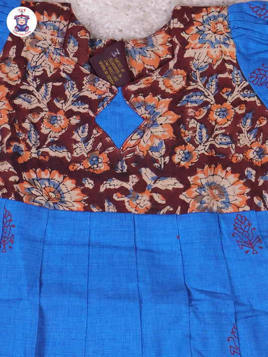 Dark Brown & Blue Floral - Girls Readymade Long Frock