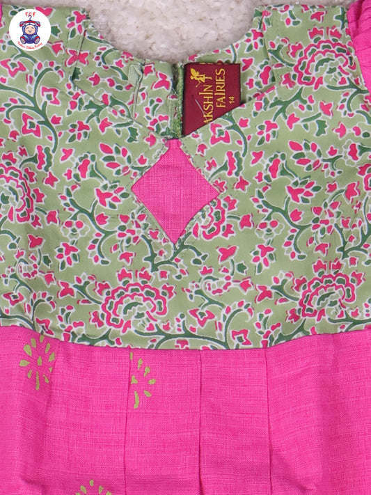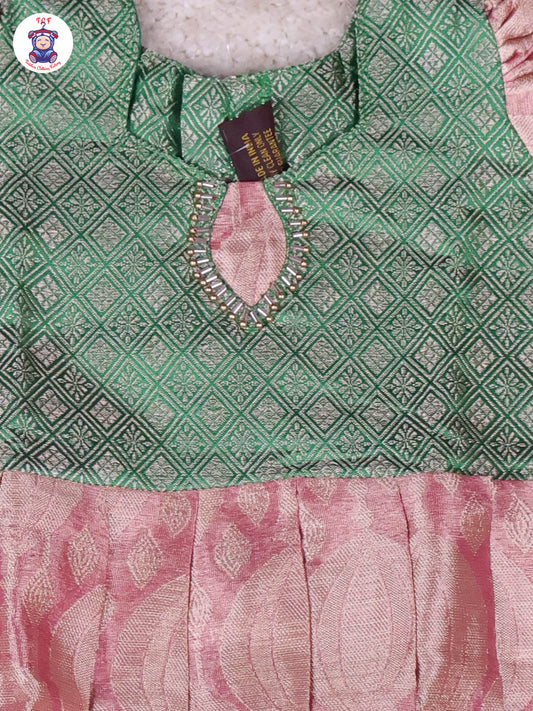 Lite Green & Pink Floral - Girls Readymade Long Frock