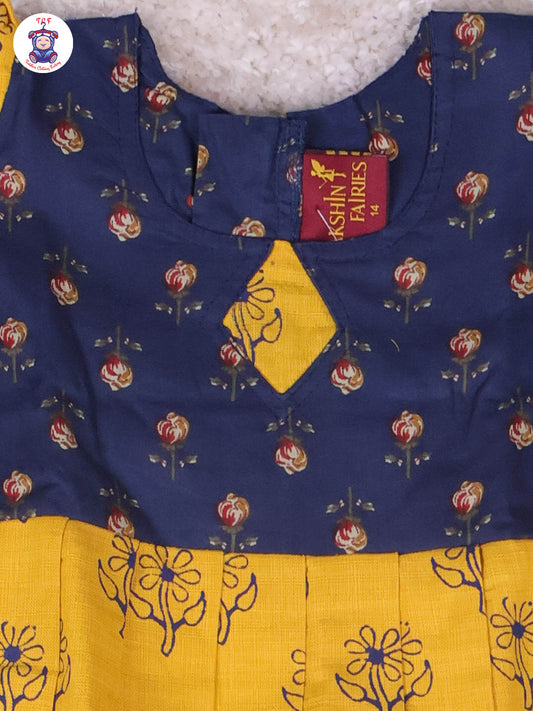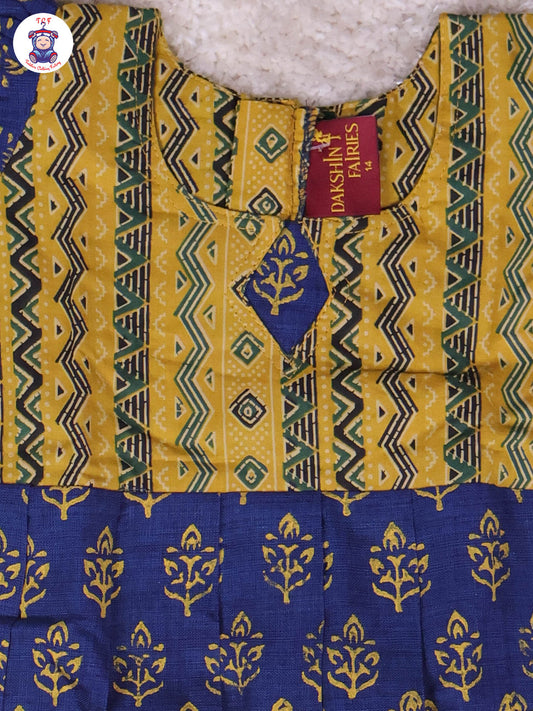 Royal Blue & Mustard Floral - Girls Readymade Long Frock
