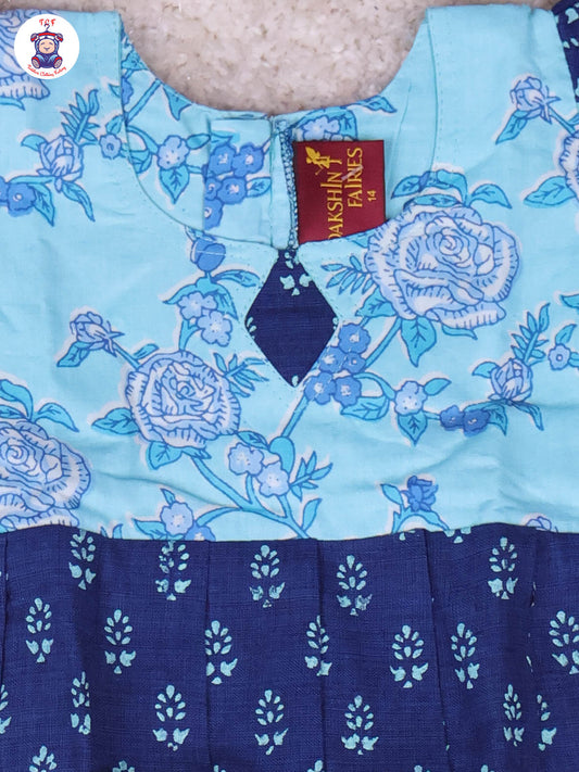 Sky Blue & Dark Blue Floral - Girls Readymade Long Frock