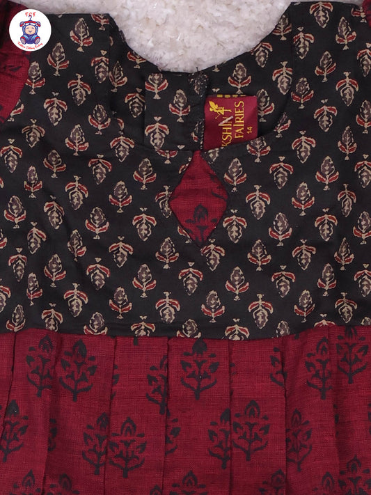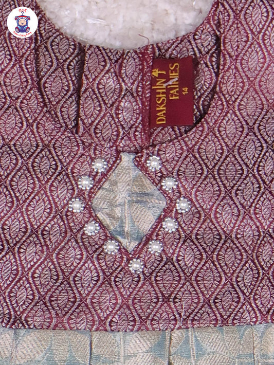 Maroon & Teal Blue - Girls Readymade Long Frock