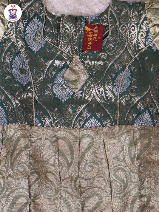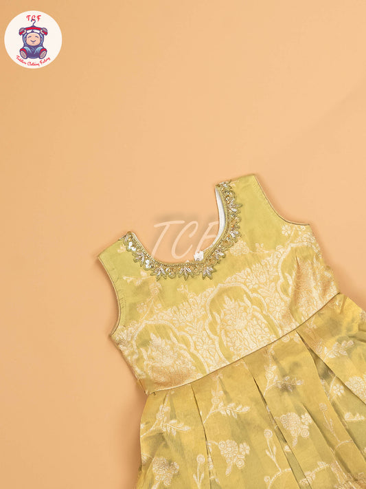 Mustard & Dark Green Floral - Girls Readymade Long Frock
