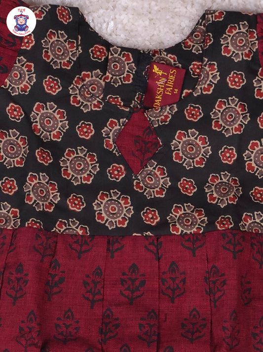 Black & Maroon Floral - Girls Readymade Long Frock
