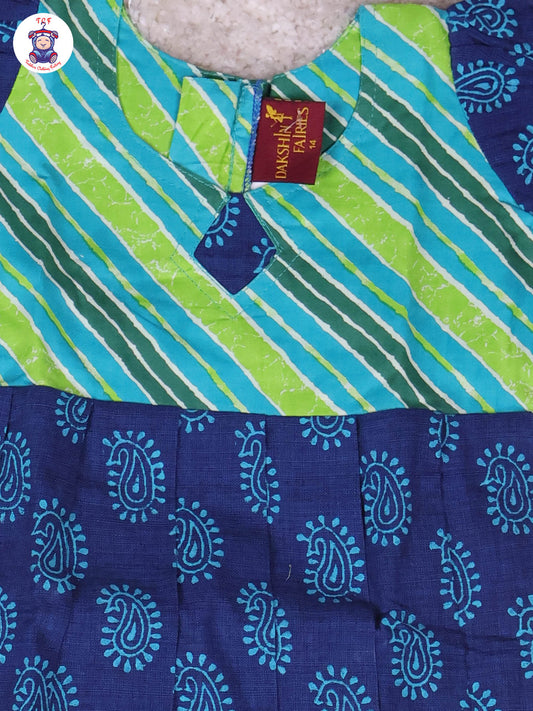 Green & Blue - Girls Readymade Long Frock