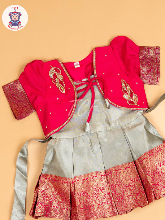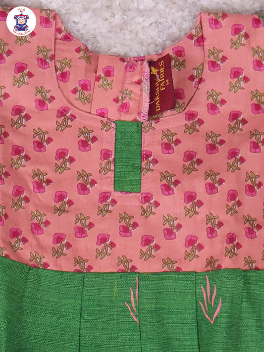Onion Pink & Green Floral - Girls Readymade Long Frock