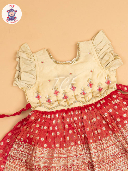 Teal Green & Red Floral - Girls Readymade Long Frock
