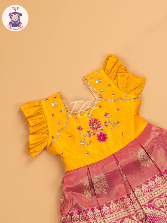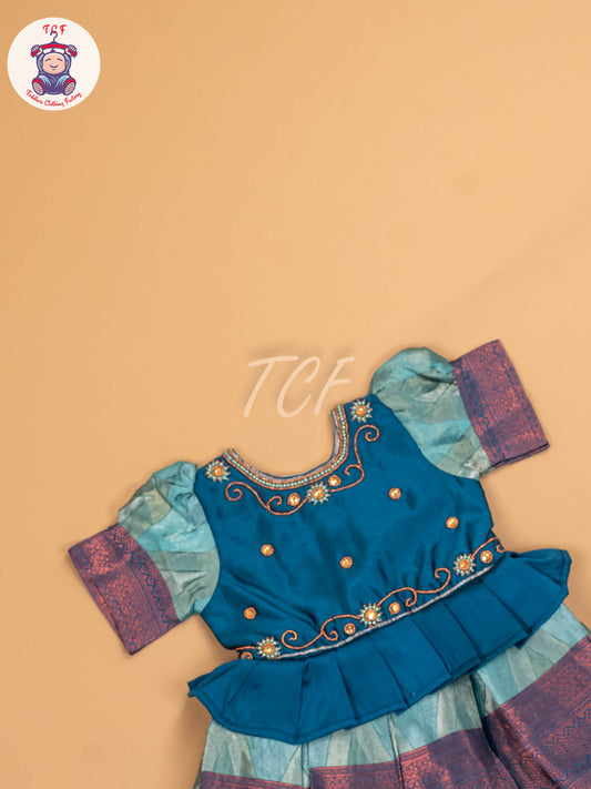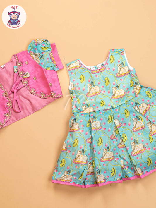 Pink & Sky Blue Floral - Kids Readymade Frocks