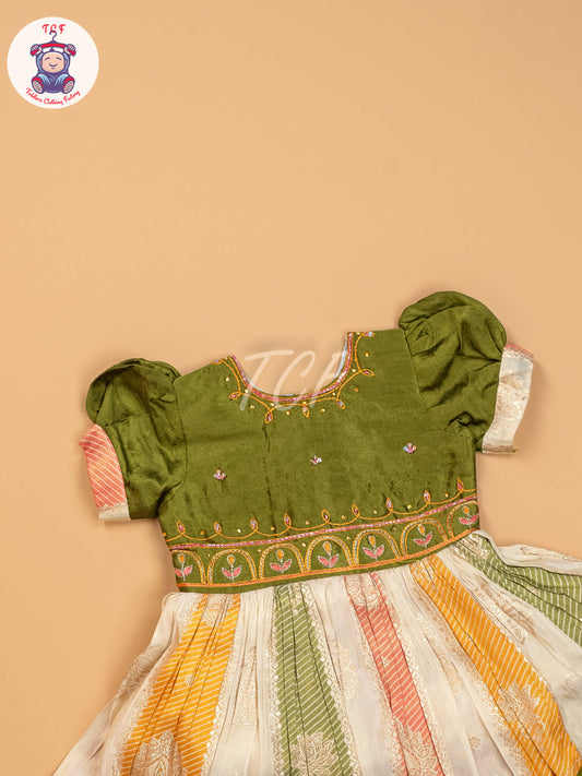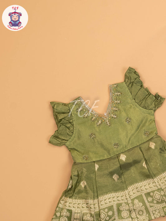 Dark Green & Pastel Green - Kids Readymade Frocks