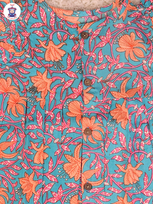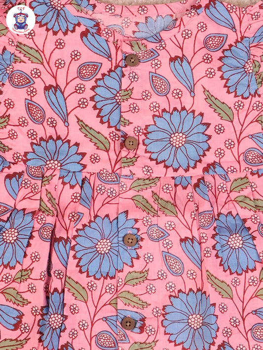 Pink & Blue Floral - Girls Readymade Jaipuri Frocks