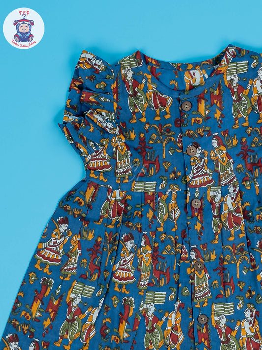 Blue Dancing Doll - Girls Readymade Jaipuri Cotton Frocks