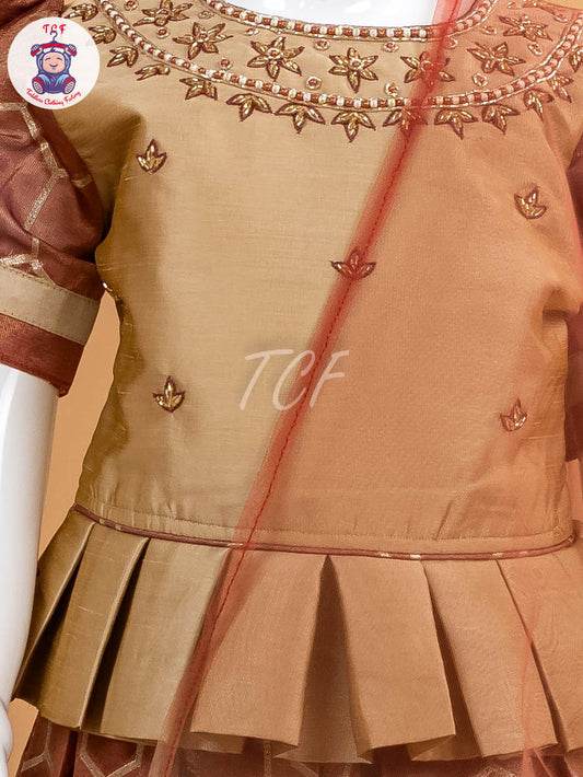 Beige & Brown Floral Print - Semi Leghanga Choli