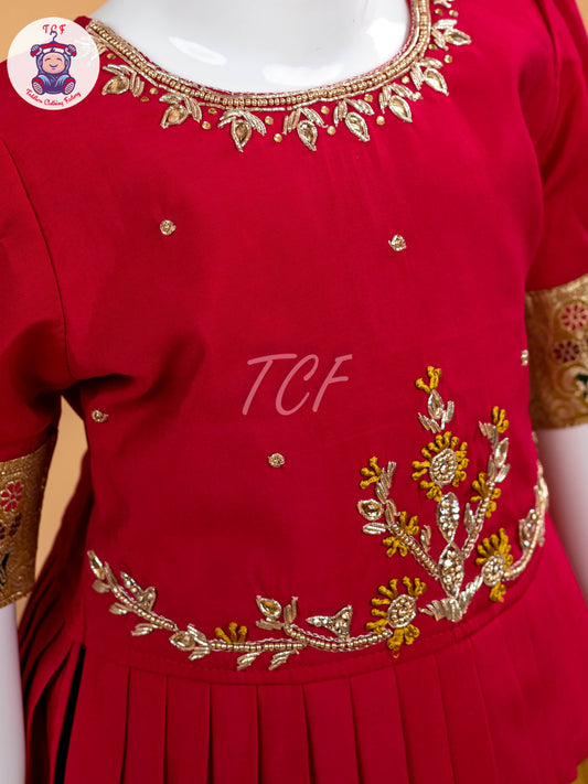 Red & Sandal Floral Print - Semi Leghanga Choli