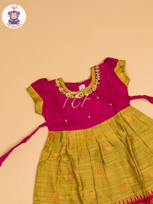 Dark Pink & Lite Green - Frock
