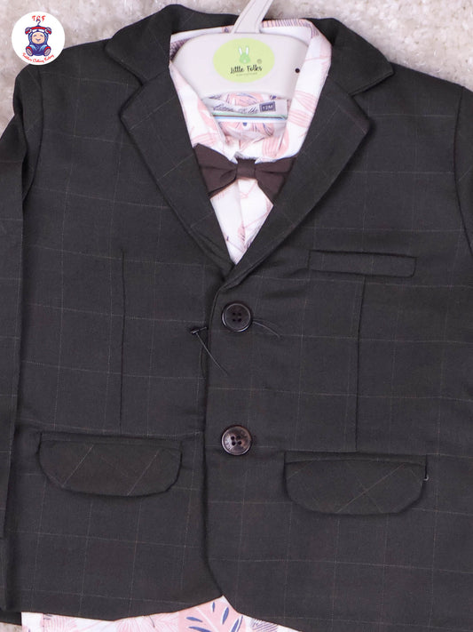 Light Brown & Pink Shirt - Boys Coat Suits With Bow