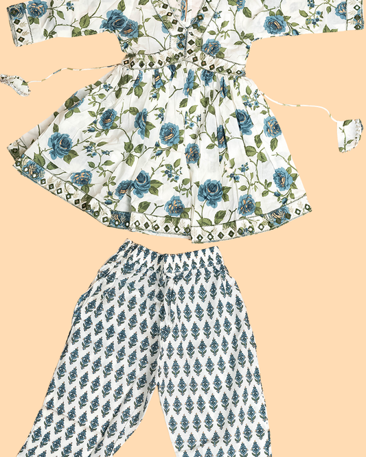 Sky Blue - Girls Floral printed Salwar