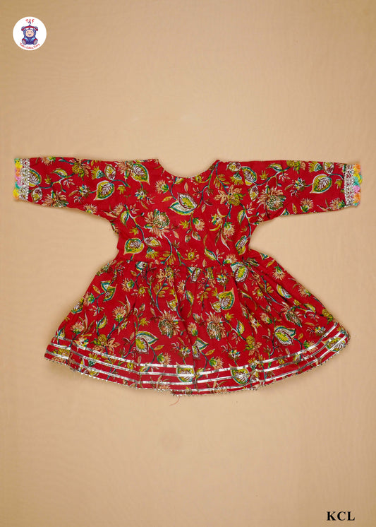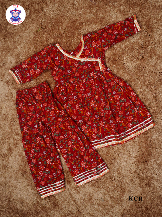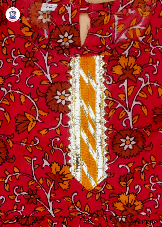 Red Orange - Floral Printed Kurti Set
