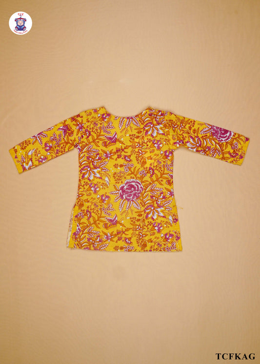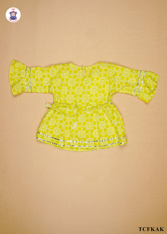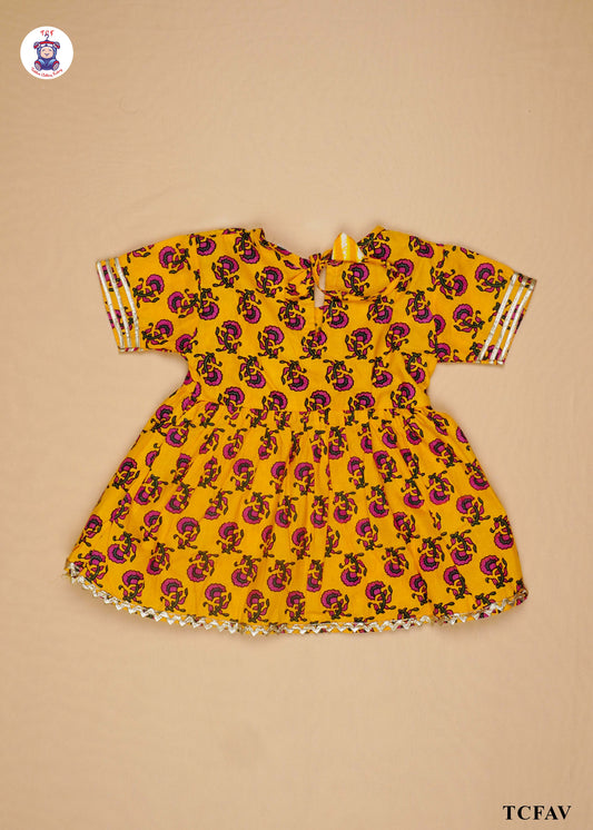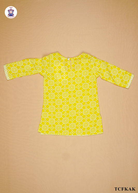Yellow - Printed Umbrella Kurti Set