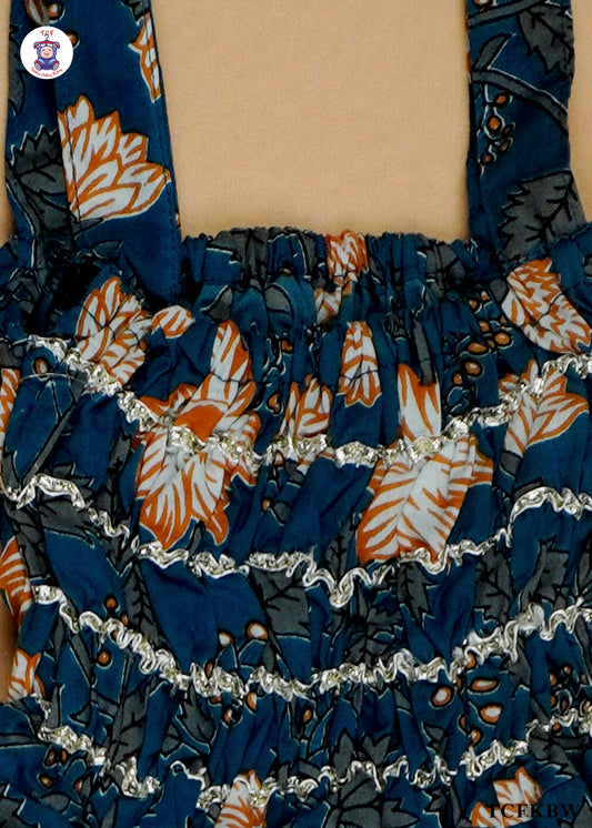 Prussian Blue - Floral Printed Sleeveless A-Line Kurti Set
